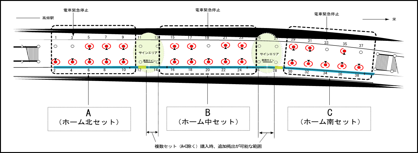Aセット ウォール部 H2,130㎜×W23,711㎜ 1面 柱部 B1ポスター16枚もしくはアドピラー8本 |