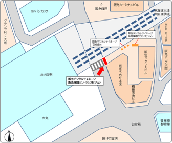 阪急大阪梅田駅とJR大阪駅を結ぶ、常に人通りの多い動線上に設置された大型デジタルサイネージ。阪急の玄関口ともいえる場所で広告展開が可能なランドマーク的なメディアです。