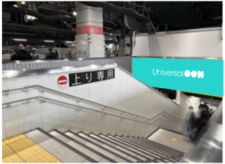 JR 渋谷駅山手線ホームから南改札へ向かうお客さまへアプローチできる、視認性の高いシート広告です。