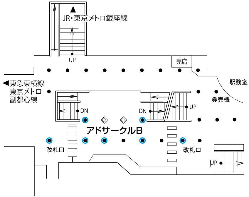 田園都市線渋谷駅中央改札の柱を活用した柱巻広告です。駅利用客の目を確実にキャッチできる訴求効果の高い媒体です。